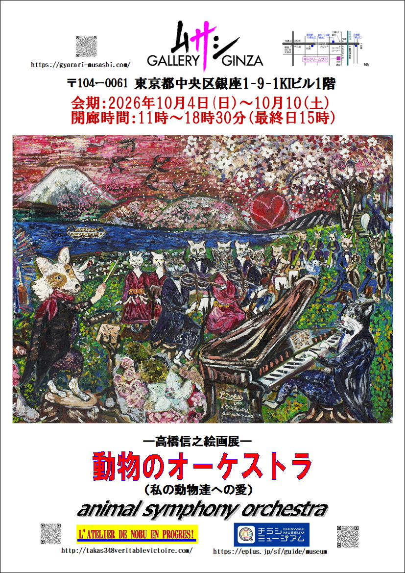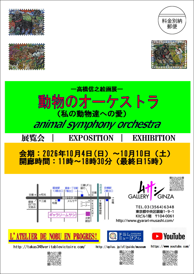 次回の個展は2026年10月4日(日)~10月10(土)です。タイトルは「私の動物達への愛」です。